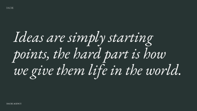 It’s not about big ideas or blue sky thinking. Ideas are simply starting points; the hard part is how we give them life in the real world. How do we turn them into something beautiful, interesting, and entertaining?