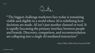 “AI accelerates everything: content, testing, iteration, and response times can be near-instant. The risk is fragmentation. Brands that move fast without coherence will disappear from consideration, even if they are prolific” - Susan O’Brien, Yellow Days, Fractional CMO