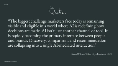 “Technology may decide which brands are shown, but it cannot decide which brands people believe in. That belief is built through ideas, experiences, and behaviour, not prompts or platforms.” - Susan O’Brien, Yellow Days, Fractional CMO