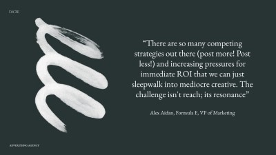 The biggest risk is being average, fading into the endless stream of content served. Cold, shouty and inauthentic. What will never change is humans' craving for connection, our craving for rich stories, ones that understand us, teach us, make us laugh, cry and even buy. But they make us feel something.