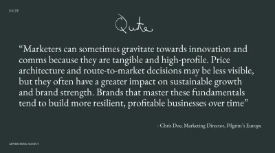 “The challenge is protecting long-term brand value while staying commercially competitive in the here and now” - Chris Doe, Marketing Director, Pilgrim’s Europe