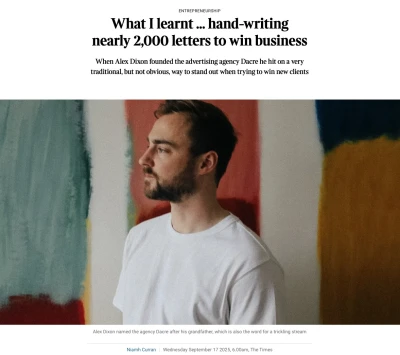 [I started writing letters] straight away because I needed a way that was going to cut through and be different to what everyone else is doing. Especially in a quite commoditised world like advertising, all agencies sound the same and do the same stuff unless you’re really big or established.